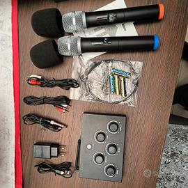 Sistema completo per karaoke dotato di due microfoni wireless bluetooth e connettività massima con porte:
