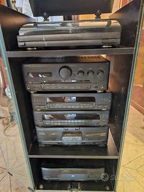 impianto Hi-Fi Kenwood completo anni ’90 (giradischi + ampli + tuner + equalizzatore + doppia cassetta + lettore CD + mobile) e vinili. Non in uso da 20 anni (ultima volta era funzionante). non possiamo assicurare le condizioni ma siamo disponibili a valutazioni.