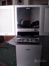 Vendo sistema della Philips modello MCD 288 E , funziona da lettore CD e DVD, radio e ha una presa USB per leggere file MP3. Completo di sub woofer e telecomando. perfettamente funzionante. senza imballo. 100 euro trattabili. consegno a mano solo in zona Pordenone e Udine. altrimenti ritiro a carico del compratore in zona Pordenone.