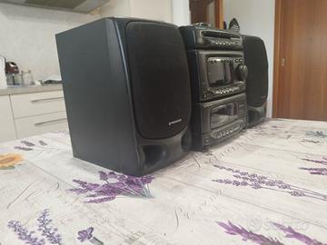 vendo sistema pioneer. Le cinghie mangiacassette sono da cambiare. Rivestimento di una delle casse e stacato.per il resto funziona perfettanente