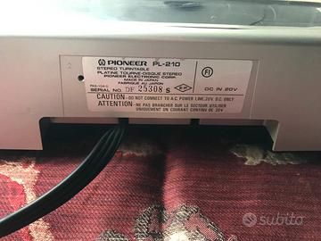 2.Giradischi PIONEER PL-210 manca la testina e non abbiamo avuto la possibilità di testarlo.