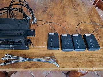 vendesi per cambio sistema, radiomicrofoni senheiser con: amplificatore d'antenna, 4 bodypack e 4 ricevitori. perfettamente funzionanti anche se con 25 anni sulle spalle. vendo solo in blocco così come da foto.