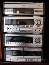 Vendo per inutilizzo sistema stereo anni 90 AIWA serie NH1100, composto da 4 pezzi (Amplificatore/Receiver MX-NH1100, Lettore CD DX-NH1100, Equalizzatore GE-NH1100, piastra cassette FX-NH1100) e 2 casse originali AIWA modello SX-NAVH1200 da 100 Watt l'una. Tutto perfettamente funzionante e tenuto benissimo. Ritiro a mano a Scandicci.