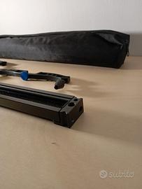 Vendo causa inutilizzo slider da 60cm con piedini regolabili e smontabili + sacca di trasposto come da foto.