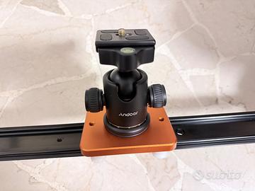 Come da titolo vendo slider per video e fotografie con testa a sfera regolabile per permettere molte inclinazioni; fissabile su cavalletti e/o stativi o appoggiabile su superfici piane.