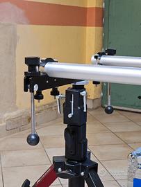 Dolly Proaim con binari di 180cm (in foto un solo binario). Sistema completo, comprende 2 pesantissimi treppiedi Muraro con ruote fatti fare appositamente (75-115cm) e un flight case. Oggetto per uso professionale. Solo consegna a mano.