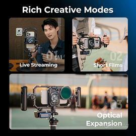 Questo kit è ideale per chi desidera migliorare la stabilità e la qualità dei propri video con lo smartphone, soprattutto durante riprese all’aperto o in condizioni di scarsa illuminazione grazie alla presenza di funzionalità termiche.