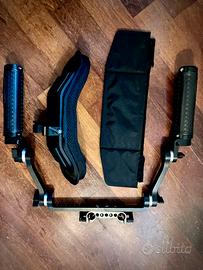 smallrig kit : tubi varie misure da 15mm, piattina sgancio rapido , alzata piattina , maniglia suoeriore , maniglie pelle inferiori e arco , spallaccio , reggi ottica per zoom peeanti e reggi video assist edelkrone . Tutto come in foto . vendo in stock .