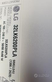 SmartTV 32 pollici Full HD 1920 x 1080 LG modello 32LK6200PLA Perfettamente funzionante. Non ha bisogno di decoder esterno. Digirale terrestre DVB-T2 incorporato. ingresso satellitare incorporato. 32” HD LED TV DVB-T DVB-T2 DVB-S H.265 (HEVC) Avi Mp4 CON telecomando. Mancano i piedi ma si può appoggiare (come in foto) o appendere. ingressi: 3x HDMI Component AV USB RGB No scambi. Solo ritiro in loco o in zone limitrofe da concordare. NON SPEDISCO. Massima serietà. Non fate proposte assurde perché neanche verranno prese in considerazione.