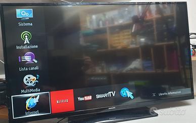 SmartTV 43 pollici Full HD 1920 x 1080 Perfettamente funzionante. Non ha bisogno di decoder esterno. Digirale terrestre DVB-T2 incorporato. ingresso satellitare incorporato. 43” HD LED TV DVB-T DVB-T2 DVB-S H.265 (HEVC) Avi Mp4 Con telecomando. ingressi HDMI SCART VGA USB RGB No scambi. Solo ritiro in loco o in zone limitrofe da concordare. NON SPEDISCO. Massima serietà. Non fate proposte assurde perché neanche verranno prese in considerazione.