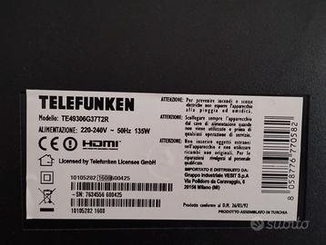 Smart tv 49" Telefunken TE49306G37T2R Si accende ma è bloccata. Non funzionante Pannello integro. No telecomando Solo ritiro a mano a Genova Ideale per chi riesce a sbloccarla o serve pannello e/o schede elettroniche
