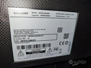 Smart TV 55 pollici della Samsung, solo tre anni di vita, piccola crepa nel piedino come da foto, ma si può appendere tranquillamente volendo.