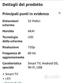 in vendita una smart TV marca Akai modello aktv3226 j di colore bianca.