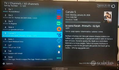 TV Italiana in Chiaro: Già impostato per vedere tutti i principali canali italiani (Rai, Mediaset, etc.) via internet. Ottimo per stanze senza presa d'antenna.