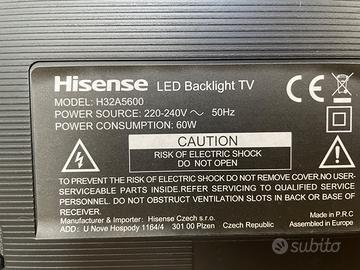 Vendo Smart TV Hisense 32” modello H32A5600, perfettamente funzionante e in ottime condizioni estetiche.