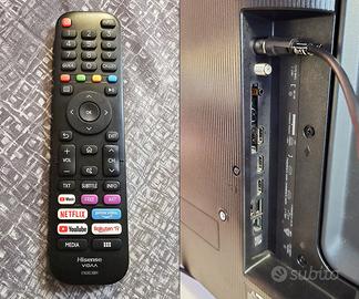 Causa inutilizzo a seguito di vendita immobile vendo Smart TV marca Hisense modello 43A7100F da 43 pollici risoluzione 4K Ultra HD con HDR acquistata nella seconda metà del 2021. Piattaforma Smart TV VIDAA molto veloce e fluida, compatibile con tutte le principali APP (Netflix, Youtube, Prime Video, DAZN, Infinity, Rakuten e molte altre). La TV è compatibile con l'ultimo digitale terrestre (DVB-T2 HEVC 10), ma anche con il DVB-S satellitare. Connessione alla rete con WiFi oppure con cavo LAN Ethernet. 3 porte HDMI di cui una con protocollo ARC, 2 porte USB, uscita audio ottica.