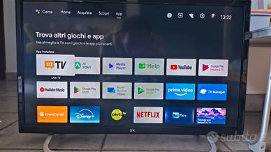 Vendo Smart TV 24 in ottimo stato utilizzata solo un paio di mesi e imballata nuovamente per motivi di trasloco e mai più utilizzata.(Presa una più grande) Si presenta come nuova!! Completa di accessori No scatola originale. Schermo: LED da 24 pollici con risoluzione HD. Sistema Operativo: Android TV 9.0, che permette l'accesso ad app e servizi smart. Sintonizzatore: Supporta gli standard DVB-C, DVB-T/T2 (nuovo digitale terrestre) e DVB-S2 (satellite). Audio: Supporto per Dolby Audio. Connettività: Include porte HDMI e slot Common Interface (CI).+ Porta usb