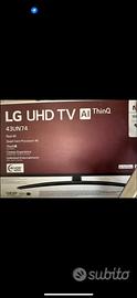 Vendo Smart TV LG 43’’ , perfettamente funzionante. Mod. 43UN74 UHD Ai Thinq compresivo di doppio telecomando, scatola e mobile TV con ruote (84x54x79H) ad euro 250 non trattabili. Inoltre in regalo, per chi acquista tutto il pacchetto, un 32 pollici Sinudyne (vedi ultima foto), no Smart TV, perfettamente funzionante con un decoder (non incluso). Vendita separata : -TV 230 euro -Mobile TV : 70 euro - TV 32 pollici Sinudyne : 50 euro Consegna a mano su Roma.