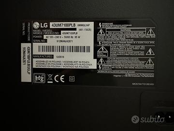 Vendo smart TV LG 43 pollici 4K modello 43UM7100PLB perfettamente funzionante con telecomando in condizioni perfette.
