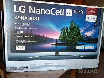 Smart TV compatibile con alexa. LG Nanocell AI ThinQ 49" real 4K. Quad core processore 4K. Perfettamente funzionante. Presenta difetto sul monitor, leggero alone luminoso bianco in basso (come da foto). altre informazioni sulla confezione in foto o contattandomi dalle 15 alle 20. Paolo tel. 3393705812