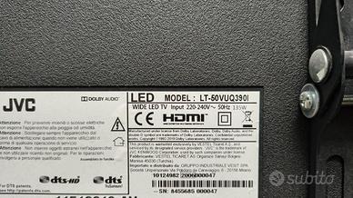 Vendo televisore marca JVC risoluzione 4K formato 50". Presenti funzioni smart TV (amazon , netflix , youtube e altro). In perfette condizioni e tutto funzionante. Modello preciso: LT-50VUQ390I Attenzione: non trovo i piedini di appoggio, io la montavo a muro con la staffa. Quindi,ripeto, non sono presenti i piedini di appoggio (acquistabili come ricambi a circa 30 euro).