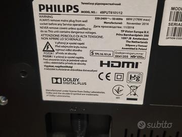 vendo smart tv philips 49 pollici,perfettamente funzionante, unico difetto,manca un pezzo di plastica trasparente sotto il led nella parte inferiore della tv,che non ne compromette il funzionamento.