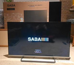 Smart TV di Saba modello SA40S89VDA da 40 pollici con schermo retroilluminato a led con risoluzione fullhd 1920x1080. Usato molto poco e perfettamente funzionante, si vende per cambio esigenze. Prime video e Netflix integrati, tv digitale terrestre T2, satellitare, presa lan, hdmi, wifi, usb.