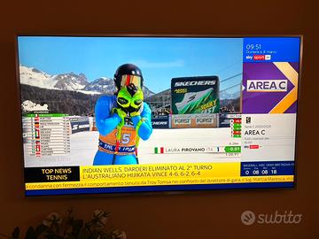 Vendo per inutilizzo Smart TV Samsung 4K 55 pollici. La tv funziona benissimo ma presenta 5 strisce impercettibili di 1mm, 1 in basso e le altre verso il centro tv, che non ne inficiano il normale utilizzo, in una foto ho zoomato il particolare. Con porta usb, 3 o 4 hdmi anche ARC, collegabile sia in wifi che con cavo ethernet. Attualmente è appesa a parete ma fornisco ovviamente anche il suo accessorio per riporla su mobile. Non spedisco, solo scambio a mano nella mia zona.