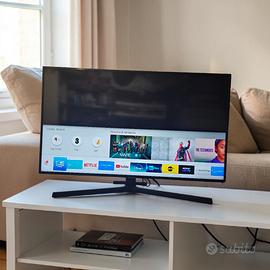 Smart TV Samsung da 50 pollici, modello UE50NU7400 (Serie NU7400). Il televisore offre una qualità d'immagine 4K UHD superiore grazie alla tecnologia Dynamic Crystal Color e HDR. Caratteristiche tecniche: Pollici: 50" (125 cm). Risoluzione: 4K Ultra HD con processore UHD. Digitale Terrestre: Sintonizzatore DVB-T2 integrato (già compatibile con il nuovo standard). Smart TV: Piattaforma Tizen veloce e aggiornata con tutte le app: Netflix, YouTube, Disney+, DAZN, Prime Video, ecc. Connessioni: 3 HDMI, 2 USB, Wi-Fi, Bluetooth e porta LAN. Design: Estetica molto curata, ultra sottile con gestione dei cavi integrata nella base. Il televisore è perfettamente funzionante, testato e completo di telecomando Smart Remote con comandi vocali.