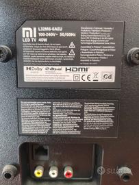 Smart TV Xiaomi Mi TV P1 da 32 pollici, modello L32M6-6AEU. Specifiche Tecniche Schermo: LED da 32 pollici (80 cm) con risoluzione HD (1366 x 768) e frequenza di aggiornamento a 60Hz. Processore e Memoria: CPU Quad-core CA53, GPU Mali-470 MP3, 1.5 GB di RAM DDR e 8 GB di memoria interna eMMC. Connettività: Wi-Fi Dual Band (2.4GHz/5GHz) e Bluetooth 4.2/5.0. Porte: 3 porte HDMI (inclusa 1 porta ARC), 2 porte USB 2.0, Ethernet (LAN) e jack per cuffie da 3.5 mm. Audio: Doppi altoparlanti da 5W (totale 10W) con supporto per Dolby Audio e DTS-HD. Sistema Operativo: Android TV. Alimentazione: 100-240V ~ 50/60Hz con un consumo di 45W