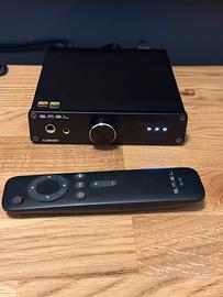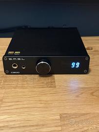 Come da titolo vendo dac e amplificatore per cuffie SMSL C200. Uscite bilanciate e sbilanciate. Alimentazione interna. Provvisto di telecomando può essere utilizzato anche come preamplificatore. Specifications DAC chipESS ES9038Q2M InputsBluetooth 5.0 1x USB-C 1x Optical Toslink 1x Coaxial Outputs1x Single-ended stereo RCA 1x Balanced stereo Jack 6.35mm TRS 1x Single-ended Jack 6.35mm headphone 1x Balanced Jack 4.4mm headphone Output levelTRS : 4.0Vrms RCA : 2.0Vrms Headphone output power2x 2.6W @ 16Ω 2x 1.3W @ 32Ω Headphone output gainLow gain : 0dB High gain : 11dB THD+NLine out : 0.0001% (-120dB) Headphone output : 0.00013% (-117dB) Dynamic rangeTRS : 126dB RCA : 125dB Headphone output : 123dB SNRTRS : 126dB RCA : 124dB Headphone output : 123dB Output impedanceLine out : 100Ω Headphone output : Near 0Ω Supported sampling ratesUSB : PCM up to 32bit 768khz, DSD up to DSD512 Optical / Coaxial : PCM up to 24bit 192kHz, DSD DoP up to DSD64 Supported Bluetooth codecsAAC, SBC, aptX, aptX HD, LDAC General Consumption5W Standby consumption< 0.5W Dimensions139 x 147.5 x 32mm Weight510g