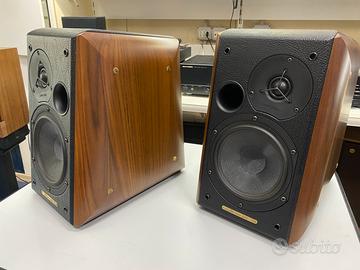 Fantastici diffusori a due vie, woofer da 180mm e tweeter a cupola in seta da 20mm della serie iconica di Frano Serblin dal design a forma di liuto completamente in legno massello con finitura in pelle. Sono tenute benissimo pari al nuovo.