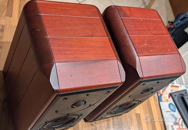 Vendo coppia di diffusori Sonus faber Minima Vintage, finitura noce massello con verniciatura ciliegio scuro. Condizioni estetiche buone, presenti solo piccoli segni di normale utilizzo sul cabinet; complete di griglie originali ma senza imballo. Diffusori perfettamente funzionanti, con driver originali, inclusi tweeter Dynaudio D28.