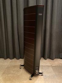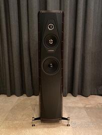 DIFFUSORE DA PAVIMENTO - 3 VIE - PORTA REFLEX LATERALE A SVILUPPO VERTICALE - TWEETER CUSTOM ARROW POINT DAD - UNITA' MEDIO BASSA DA 150 MM CUSTOM CON MEMBRANA IN COMPOUND MATERIALI NATURALI NON PRESSATI E SENZA ASCIUGATURA FORZATA - WOOFER DA 9" DERIVATO DA QUELLO DELL'AIDA CON MEMBRANA IN SANDWICH DI MATERIALE HIGH TECH E POLPA DI CELLULOSA - CABINET ANTIRISONANTE A FORMA DI LIRA CON TRIPLA CURVATURA ALTEZZA 106 CM, LARGHEZZA 37 CM. PROFONDITÀ 48 CM, PESO 34 KG