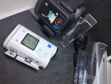 Action cam in buone condizioni, nessun graffio, urto, muffa, ammaccatura sia sul corpo che sulla lente lente (sempre usata con la protezione inclusa), sensore Sony Xmor retroilluminato, ottiche Zaiss f 2.8, velocità otturatore 1/30-1/10000, processore di immagini BionzX, distanza minima af 30cm, solo 93g, stabilizzatore d'immagine steadyshot, 6 lux minimo, modalità di registrazione in Xavc-S h.264 50Mbps 1080p a 60fps, 30fps, 24fps in MP4 h.264 max 28Mps 60fps, 30fps in 1080P, 30fps, 120fps in 720p, 240fps in STD, registrazione PAL/NTSC, slow motion time lapse, oltre l action cam è in vendita con telecomando Wi-Fi remoto originale Soni RM-LVR2 (vedasi foto piccola crepa sullo sportello di ricarica he non ne pregiudica l impearmibilita o il funzionamento),