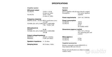 SPETTACOLARE SONY Amplificatore Mod. TA-FE370 Pot. 70+70W a 110 Euro,ATTENZIONE c'è una leggera flessione del telaio superire appena percettibile dovuta all'uso .