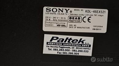 Sony KDL-46EX521. Dimensioni schermo: 116,8 cm (46"), Risoluzione del display: 1920 x 1080 Pixel, Tipologia HD: Full HD, Tecnologia display: LCD, Rapporto d'aspetto nativo: 16:9. Formato del segnale digitale: DVB-T.