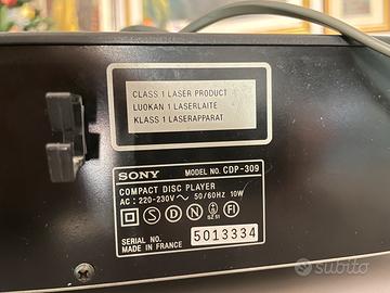 Vendo lettore CD Sony CDP-309 perfettamente funzionante e in buonissime condizioni.