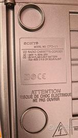 SONY MODEL NO. CFD-V7 CD RADIO CASSETTE- CORDER AC : 230V 50Hz 20W DC : 9V FLASHLIGHT BATTERY R20 SIzE d X 6 OR EQUIVALENT No Spedizione Solo consegna a mano Lettore CD e Cassette, radio, registra. Ottime condizioni