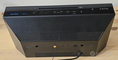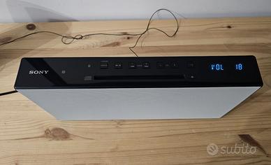 Sistema Hi-Fi Sony con Bluetooth, Lettore CD, radio e USB. Modello CMT-X3CD Sistema Hi-Fi all-in-one con facile accesso alla musica tramite Bluetooth wireless con connessione one-touch e NFC. Questo sistema Hi-Fi compatto offre un suono eccellente. Il CMT-X3CD eroga 20 W di potenza su due canali audio, garantendo una qualità audio costante dagli altoparlanti a banda larga, anche ad alti volumi. Pannello posteriore: - Connessioni: USB, Ingresso audio, Uscita cuffie - Antenna a filo - Cavo di collegamento con connettore piatto Dimensioni: L 34 cm x A 17,5 cm x P 9 cm Usato pochissimo. Prezzo non trattabile.