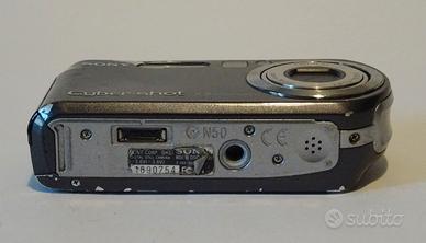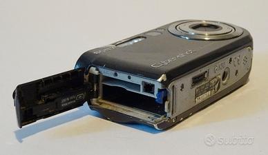 Macchina fotografica digitale in condizioni estetiche scarse, presenta molti graffi e segni di usura .