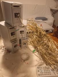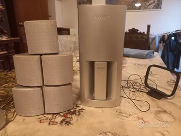Vendo sistema home theater Sony DAV-S400 5.1. Il sistema si accende regolarmente e funziona in cuffia (audio presente). Le casse non emettono suono, quindi viene venduto come da verificare / per ricambi o per chi sa metterci mano. Composto da: unità centrale con lettore DVD subwoofer casse (se le hai, aggiungile) cavi originali (se presenti) telecomando (se presente) Caratteristiche: sistema 5.1 con tecnologia Sony S-Master lettore DVD integrato radio FM (Tuner funzionante) ingresso AUX Condizioni estetiche buone considerando l’età. Ideale per: pezzi di ricambio appassionati di elettronica collezionisti Sony