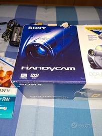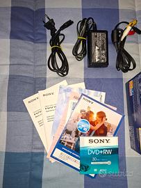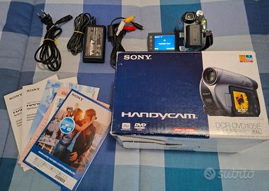 Videocamera Sony Handycam DCR-DVD105E completa di accessori. - Videocamera digitale. - Modello DCR-DVD105E. - Include manuali e cavi. - Alimentatore. - Custodia originale. - DVD-R Sony sigillato