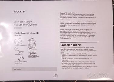 La batteria ricaricabile interna mantiene correttamente la carica e l’autonomia è adeguata per diverse ore di utilizzo continuo. La ricarica avviene semplicemente appoggiando le cuffie sulla base trasmittente inclusa, che funge anche da supporto. Inclusi nella vendita ci sono le cuffie, la base trasmittente/di ricarica, l’alimentatore e il cavo audio originali. Ho stampato e inserito anche una copia integrale delle istruzioni del modello in questione. L’oggetto proviene da ambiente di non fumatori. Vendo per inutilizzo.