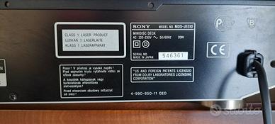 Volevo da titolo vendo registratore/riproduttore minidisc sony MDS JE510, apparecchio vintage anni 90 di cui all'epoca rappresentava uno dei modelli di punta. Conservato e funzionante perfettamente, corredato del suo telecomando originale indispensabile per alcune funzioni di editing e con 11 minidisc (registrati ma riscrisviboli) di cui 2 nuovi. Astenersi da proposte ridicole. Solo se realmente interessati. Nessun segno di usura.