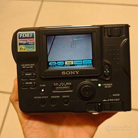Vendo Sony MVC-FD83 in ottime condizioni estetiche. La fotocamera va a floppy disk (non incluso) e funziona perfettamente. Include una batteria e il carica batterie.