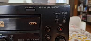 sony rcd-w100 doppio cd uno registra mancava un pomello se vedete ne ho messo uno simile tutto funziona.prezzo legg trattabile.