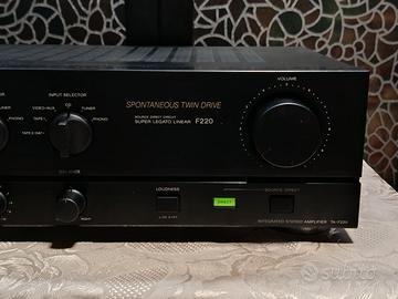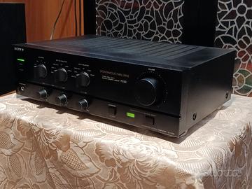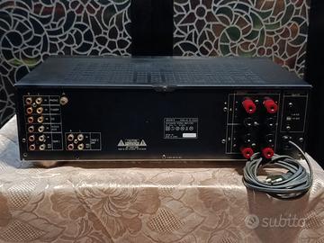 Vendo amplificatore stereo integrato Sony TA-F220 possibilità di collegare 4 diffusori (2+2), in ottime condizioni, perfettamente funzionante, comprensivo manuale in formato elettronico .pdf, Hi-Fi vintage anni '90 In caso di spedizione non utilizzo il servizio di tuttosubito. Accetto altro pagamento con video dimostrativo del funzionamento Caratteristiche: -Anno di produzione: 1990 -Tipo: Spontaneous Twin Drive - Super Legato Linear - Source Direct Circuit -Frontale: Nero con scritte bianche -Potenza nominale 220W -Potenza canale 50W min.in RMS su 8 ohm -Risposta in frequenza: 7Hz - 100kHz -Distorsione armonica totale: 0.05% -Damping factor: 40 -Impedenza speaker da 4 a 16 Ohm -Ingressi RCA: Phono, CD, Video/Aux, Tuner, Tape 1, Tape 2 / DAT -Uscite RCA: Tape 1, Tape 2 / DAT -Selettore Speaker Control: A, B, A + B, poi off (output) tramite jack per cuffie -Selettore Rec Out Control Tape 2>1, Tape 1>2, Video/Aux, Cd, Tuner, Phono -Selettore Sorgente Audio : Tape 2/Dat, Tape 1, Video/Aux , Cd, Tuner, Phono -Tasto selezione "Source Direct" (trattamento diretto di segnali audio aggirando i controlli di tono) -Tasto selezione "Loudness": -Controlli per bassi, alti, balance -Jack per cuffie -Alimentazione a corrente alternata (CA) 220 Volt 50Hz, 3 prese di alimentazione -Dimensioni: L-43cm x H-13,5cm x P-31,5cm -Peso: 7,4kg Per informazioni non esitate a contattare!!! Eventuale spedizione in TUTTA ITALIA TAF220 TAF 220 F220 TA F 220 TA F220