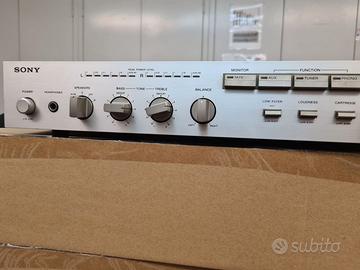 Amplificatore della SONY Corporation dall'altezza di soli 8 centimetri da un suono raffinato e pulito grazie alla bassissima distorsione. Completamente revisionato e tarato viene ceduto in condizioni simili a quando era nuovo.