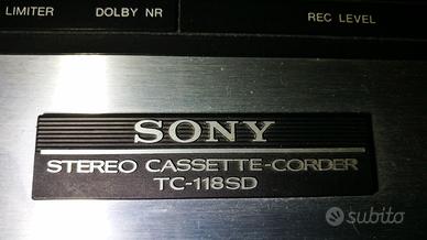 Sony TC-118SD Piastra Tape Deck Cassette vintage anni 70 VU-Meter e registratore. Livelli di registrazione indipendenti per canale, selettore di Dolby, Limiter e tipo di nastro.